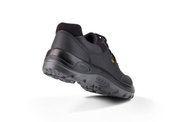Calçado Antiestático, tipo calçado baixo, confeccionado em vaqueta relax, fechamento em cadarço, palmilha de montagem, palmilha interna higiênica removível e lavável, solado em poliuretano bidensidade, resistente a óleos combustíveis, injetado direto no cabedal.
